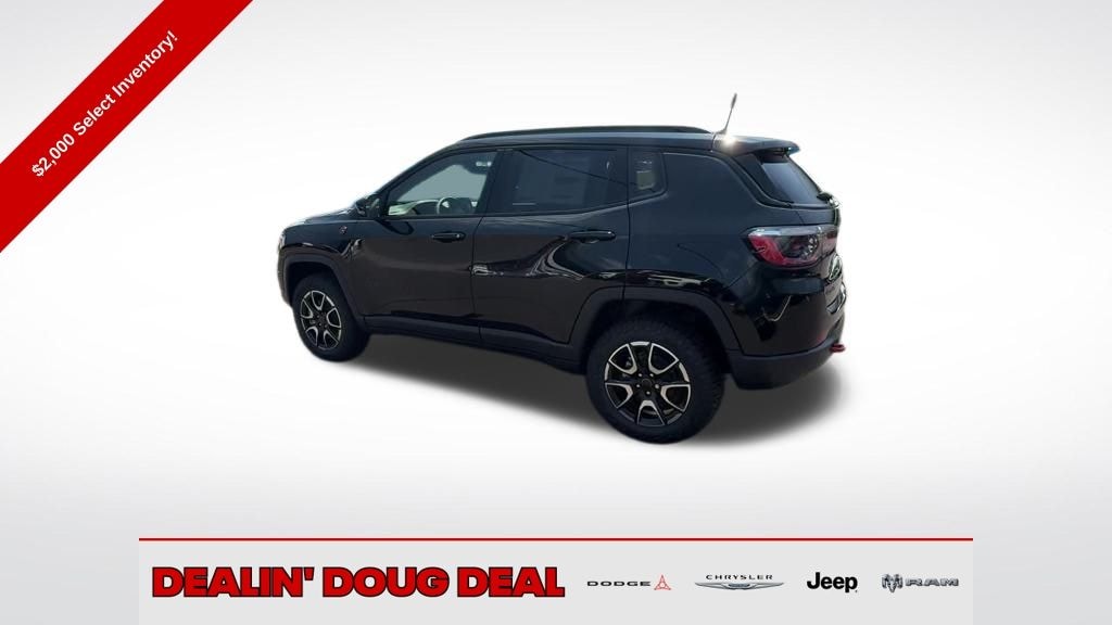 New Price! Diamond Black Crystal Pearlcoat 2025 Jeep Compass Trailhawk 4WD 8-Speed Automatic 2.0L I4 DOHC 4WD, AM/FM radio: SiriusXM, Front dual zone A/C, Front fog lights, Fully automatic headlights, Heated Front Seats, Heated Steering Wheel, ParkView Rear Back-Up Camera, Power Adjust 8-Way Driver Seat, Quick Order Package 29E, Radio: Uconnect 5 w/10.1" Display, Rain sensing wipers, Rear window defroster, Rear window wiper, Remote Start System, Reversible Carpet/Vinyl Cargo Mat, Security system, Trailhawk Convenience Group, Wheels: 17" x 6.5" Painted Black Aluminum, Windshield Wiper De-Icer.