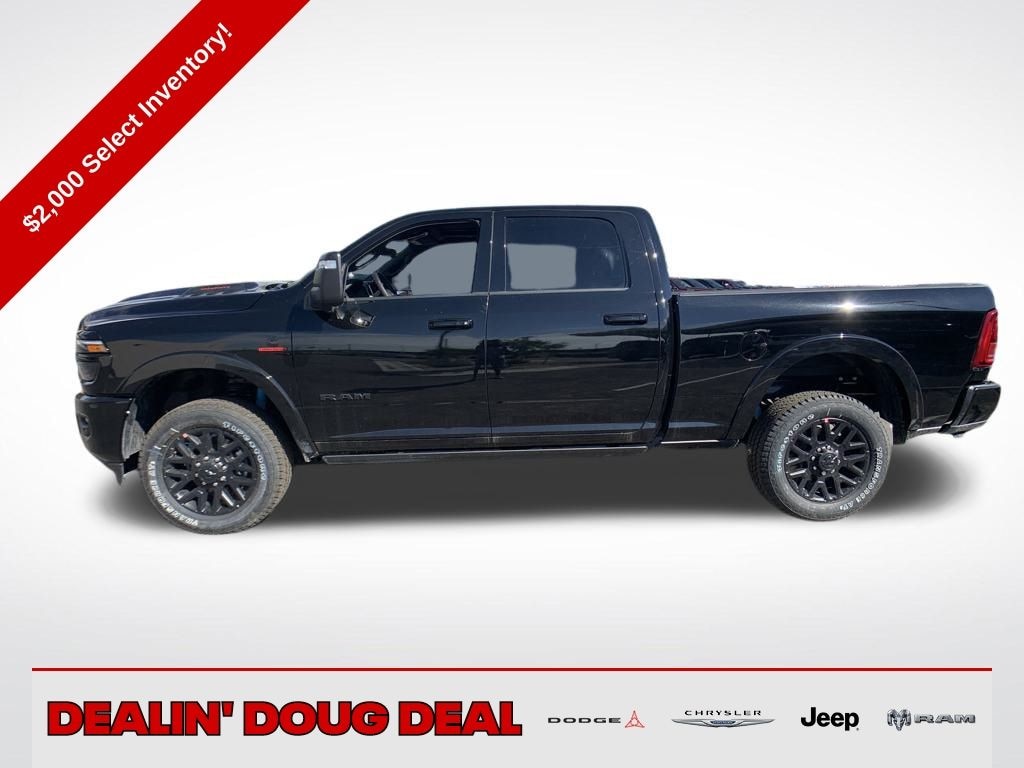 Diamond Black Crystal Pearlcoat 2025 Ram 2500 Limited 4WD 8-Speed Automatic Cummins 6.7L I6 Turbodiesel 17 Speakers, 3.73 Axle Ratio, 5th Wheel/Gooseneck Towing Prep Group, Active Lane Management System, Adaptive Steering System, AM/FM radio: SiriusXM with 360L, Anti-Spin Differential Rear Axle, Apple CarPlay/Android Auto, Automatic temperature control, Auxiliary Switches Prep, Cold Weather Group, CTR Stop Lamp w/Cargo View Camera, Digital 3.0 Rear View Auto Dimming Mirror, Drowsy Driver Detection, Engine Block Heater, Front fog lights, Fully automatic headlights, harman/kardon® Speakers, Heated Front Seats, Heated rear seats, Heated Steering Wheel, Hill Descent Control, LED Bed Lighting, Limited Level 1 Equipment Group, MOPAR Spray In Bedliner, Navigation System, Night Edition, Off Road Package, ParkView Rear Back-Up Camera, Power Deployable Running Boards, Power Sunroof, Radio: Uconnect 5 Nav w/14.4" Display, Rain sensing wipers, Rear window defroster, Security system, Speed control, Sport Performance Hood, Surround View Camera System, Tow Technology Plus Group, Traffic Sign Recognition, Trailer Reverse Guidance, Trailer Reverse Steering Control, Trailer Tire Pressure Monitoring System, Ultra Premium Leather Seats, Variably intermittent wipers, Ventilated Front Seats, Wheels: 20" x 8.0" Night Edition Black Aluminum.