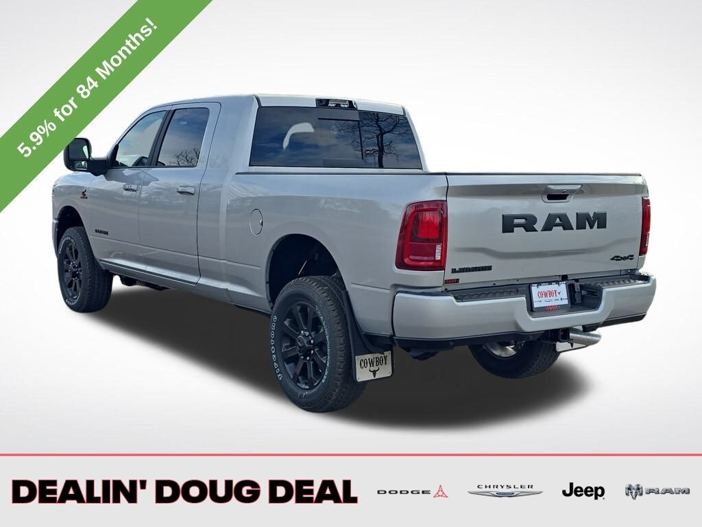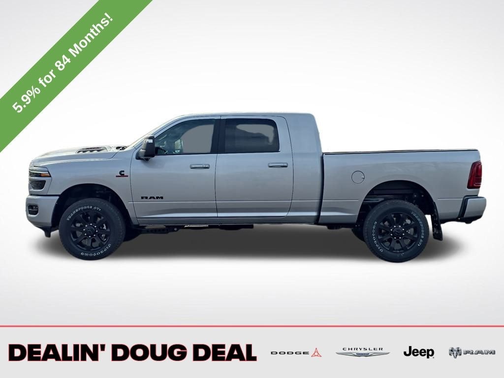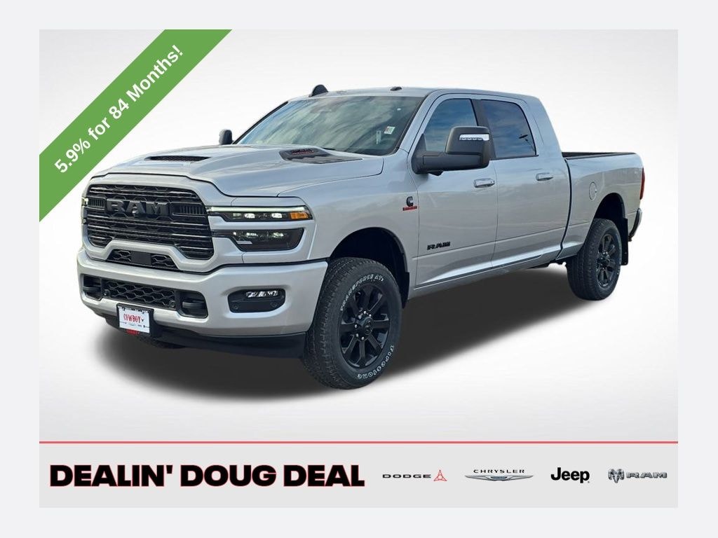 Silver Zynith 2026 Ram 2500 Laramie 4WD 8-Speed Automatic 6.7L I6 #1 Seat Foam Cushion, 115V Auxiliary Rear Power Outlet, 2 Way Rear Headrest Seat, 4 Way Front Headrests, Active Lane Management System, Adaptive Steering System, Anti-Spin Differential Rear Axle, Auto Dim Exterior Mirror, Auto High Beam Headlamp Control, Auto Power-Folding Mirrors, Auto-Dimming Exterior Passenger Mirror, Black Exterior Truck Badging, Black Wheel Center Hub, Body Color Grille Surround, Bucket Seats, Cold Weather Group, Drowsy Driver Detection, Dual Wireless Charging Pad, Engine Block Heater, Exterior Mirrors Courtesy Lamps, Front Seat Back Map Pockets, Full Length Upgraded Floor Console, Gloss Black Grille Billets/Accents, Heated Front Seats, Heated Second Row Seats, Heated Steering Wheel, High Back Seats, Laramie Level 1 Plus Equipment Group, Leather Trimmed Bucket Seats, LED Bed Lighting, Mirror Running Lights, MOPAR Deployable Bed Step, MOPAR Winter Front Grille Cover, Night Edition, Power 2-Way Driver Lumbar Adjust, Power 2-Way Passenger Lumbar Adjust, Power Adjust 8-Way Driver Seat, Power Adjust 8-Way Front Passenger Seat, Power Adjust Mirrors, Power Adjustable Convex Aux Mirrors, Power Heated Fold Telescope Mirrors w/Memory, Power Telescoping Mirrors, Quick Order Package 24H Laramie, Rain Sensitive Windshield Wipers, Rear 60/40 Folding Seat, Remote Tailgate Release, Sport Performance Hood, Surround View Camera System, Towing Technology Group, Traffic Sign Recognition, Trailer Reverse Guidance, Trailer Tire Pressure Monitoring System, Wheels: 20" x 8" Black Painted Aluminum. Price includes: $1000 - 2026 National Bonus Cash . Exp. 03/31/2026